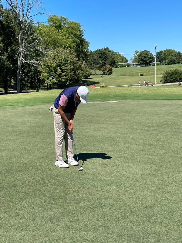 Jay Coleman putts for birdie in the DII Distrcit Golf Tournament